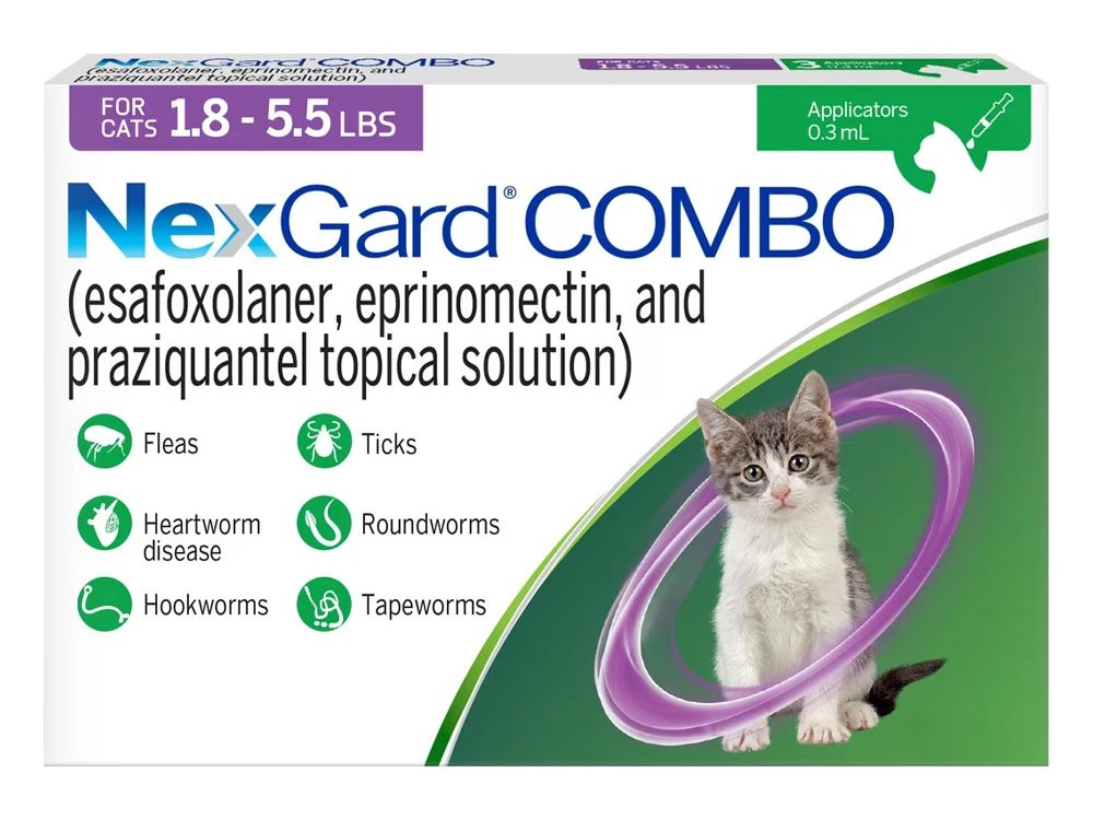 NexGard Combo is designed for monthly administration and can be safely used in cats and kittens from 8 weeks of age, weighing at least 1.8 lbs.